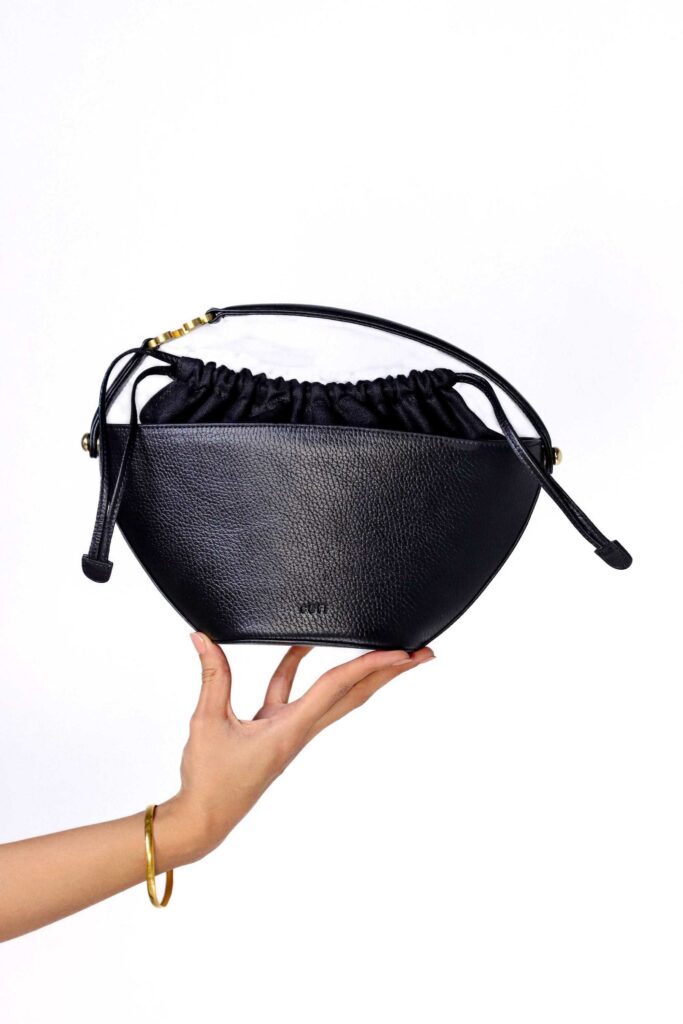 Filled By U est un sac demi-lune en cuir noir, pensé pour suivre votre rythme — du matin au soir, sans effort.