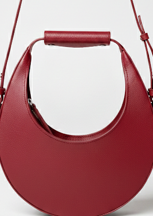 Sac rond iconique en cuir rouge premium, inspiré des codes des grandes maisons de luxe. OVER THE MOON Ruby conserve