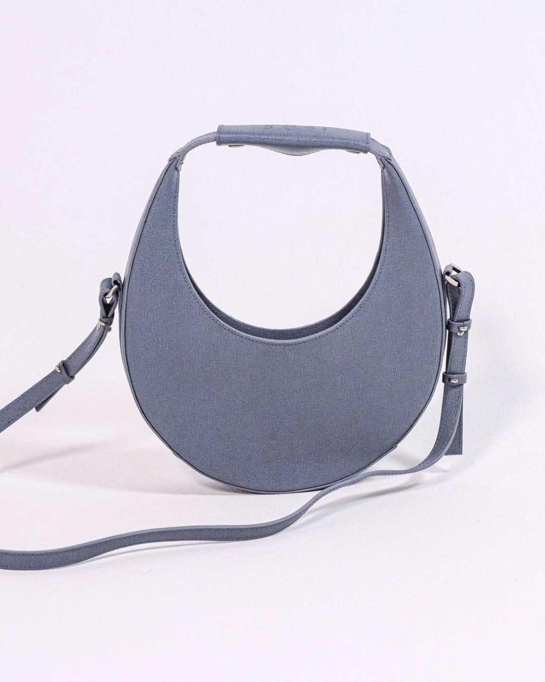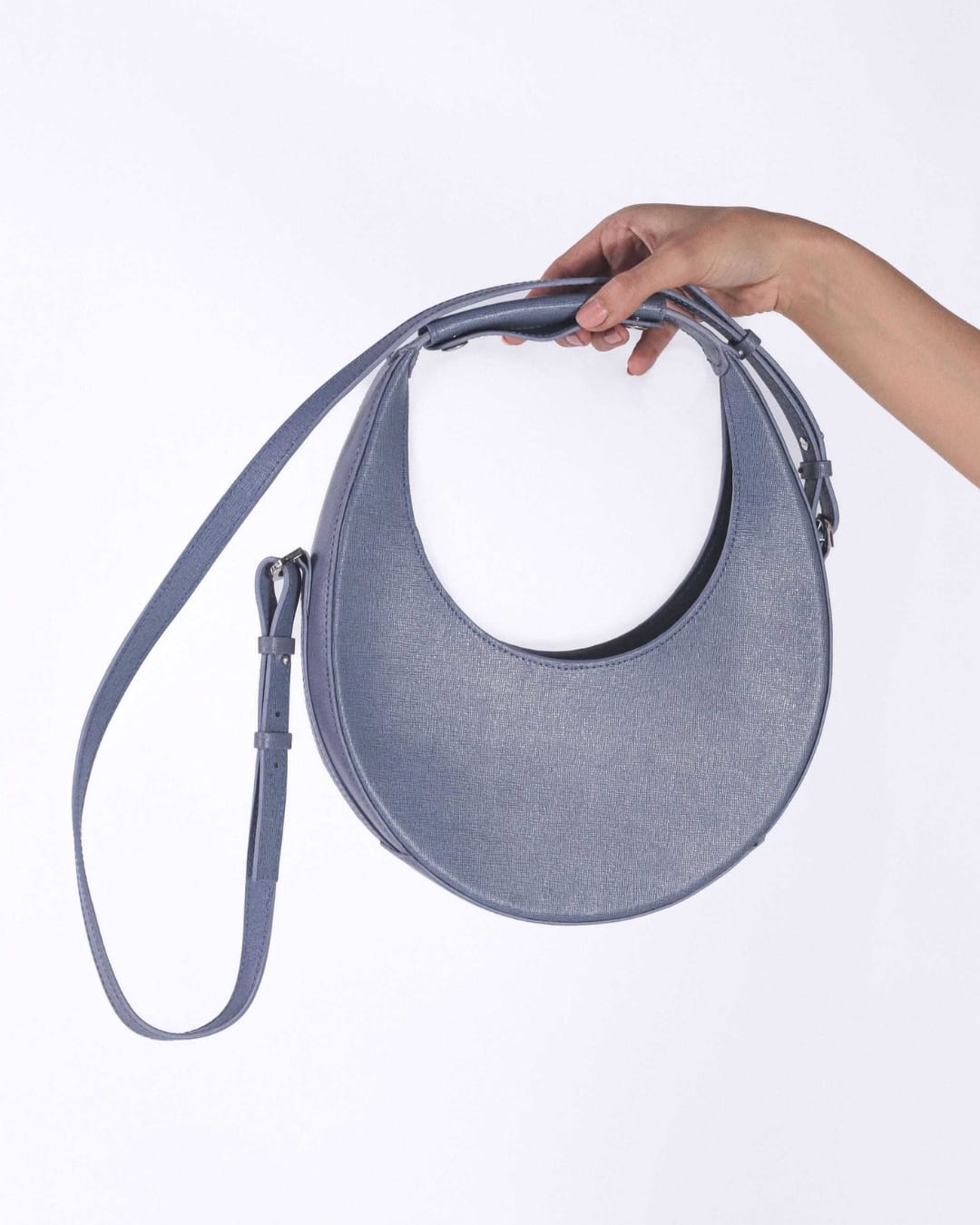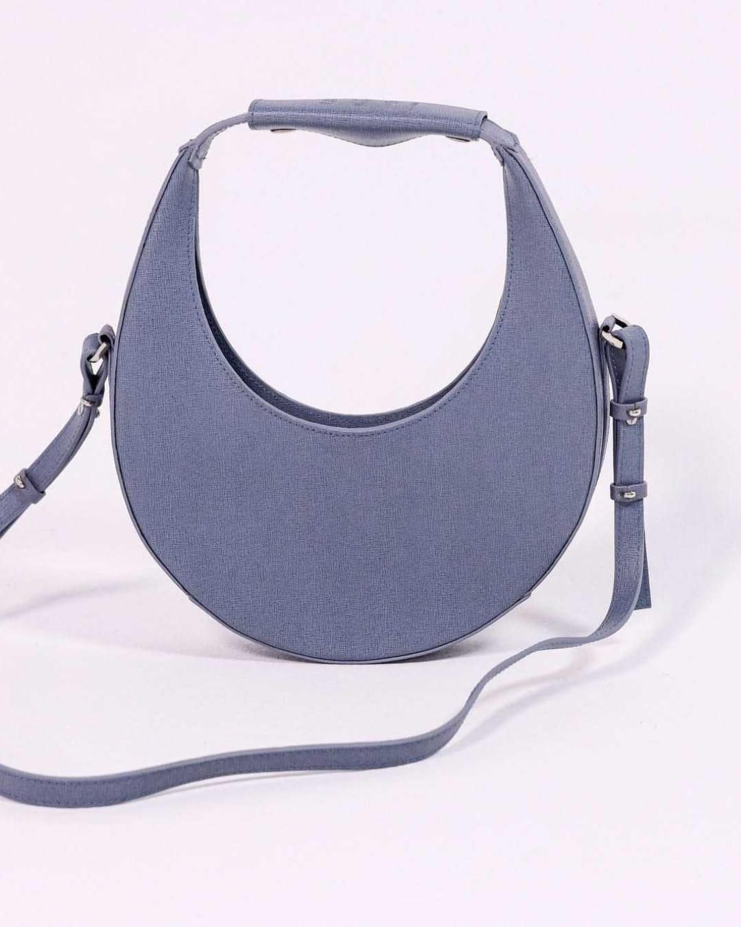 Sac rond iconique en cuir bleu premium qualité comparable aux grandes maisons de luxe. OVER THE MOON reprend une silhouette emblématique et la place en version cuir premium. Tannage et finition haut de gamme, grain uniforme et résistance accrue : le cuir utilisé correspond aux standards des maisons de luxe, pour une tenue et une patine à long terme. Porte-épaule convertible en crossbody, volume utile pour l’essentiel, fermoir discret et couture main pour une finition soignée.